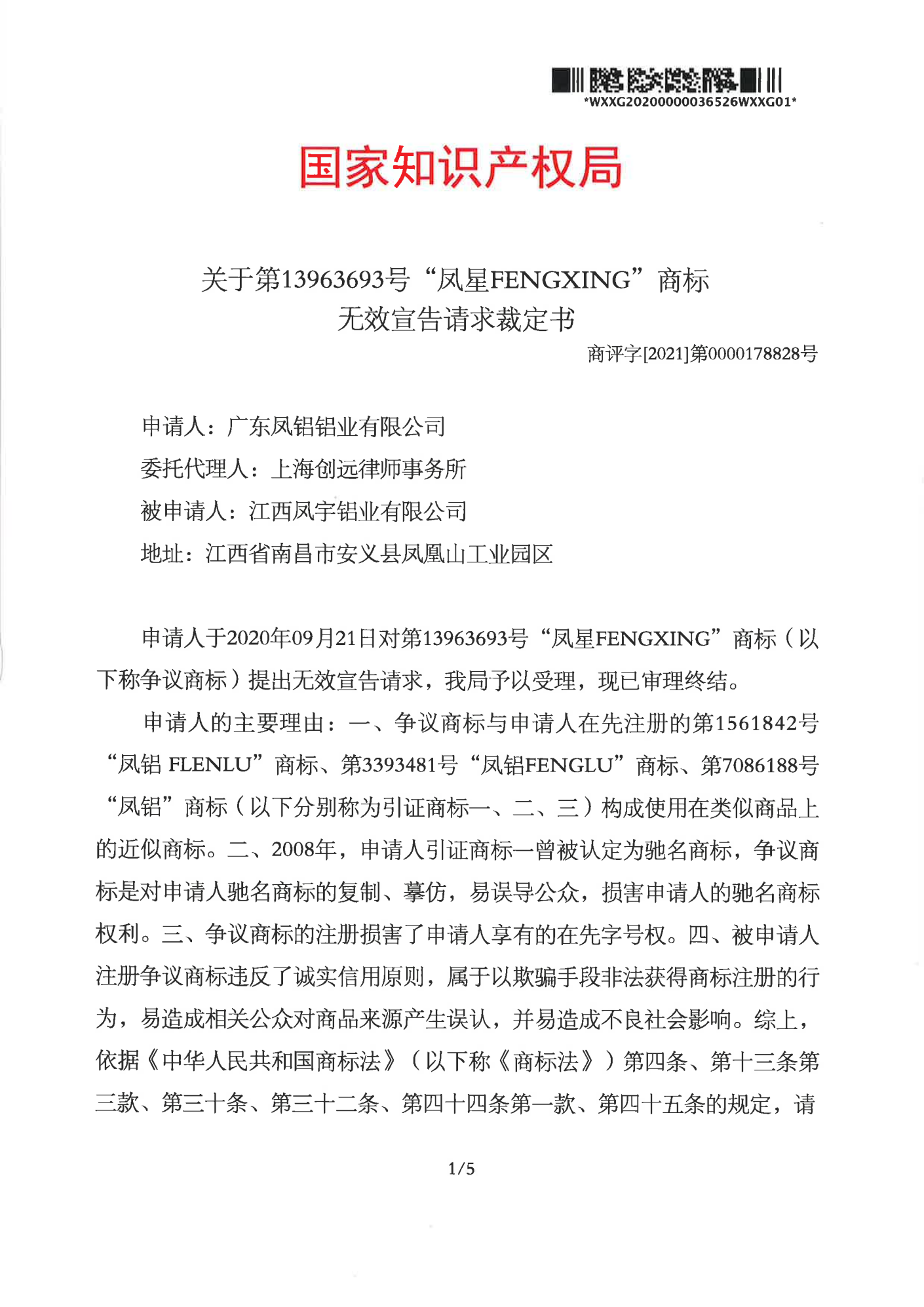 阿克苏辉知队 | 国家知识产权局:“凤星”商标无效