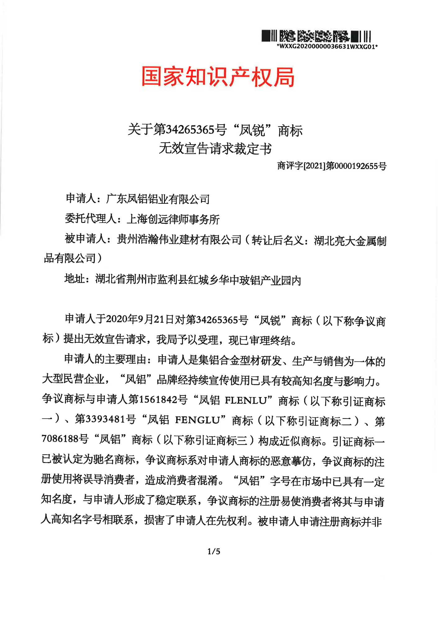阿克苏辉知队 | 国家知识产权局:“凤锐”商标无效